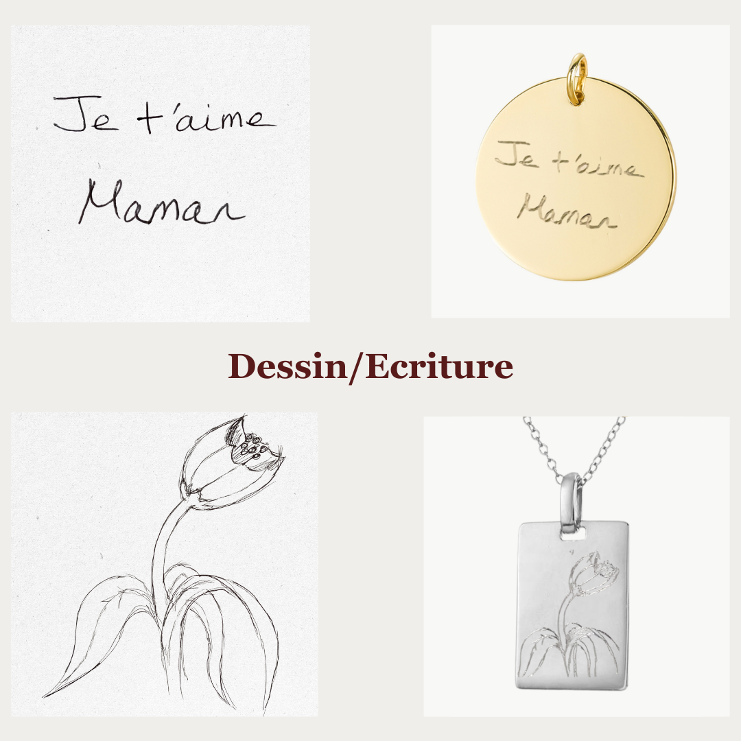 Chaque bijou est gravé dans notre atelier en Suisse, à partir de vos empreintes, dessins ou mots d’amour. Plus qu’un accessoire, c’est une histoire à offrir ou à garder pour toujours.