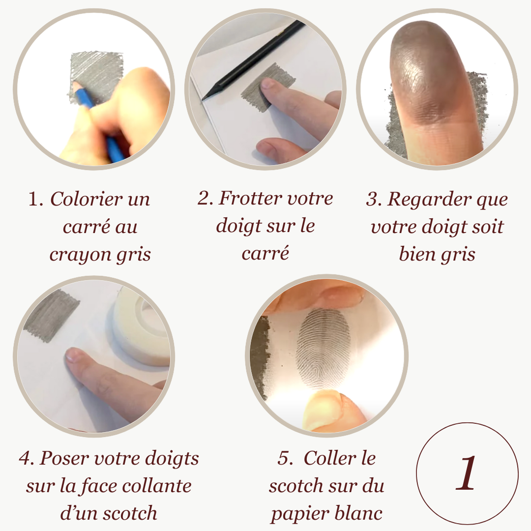 Coloriez une petite zone sur une feuille blanche avec un crayon à papier. Passez votre doigt sur la zone colorée, puis posez-le sur un ruban adhésif transparent. Collez ce ruban sur une feuille blanche.